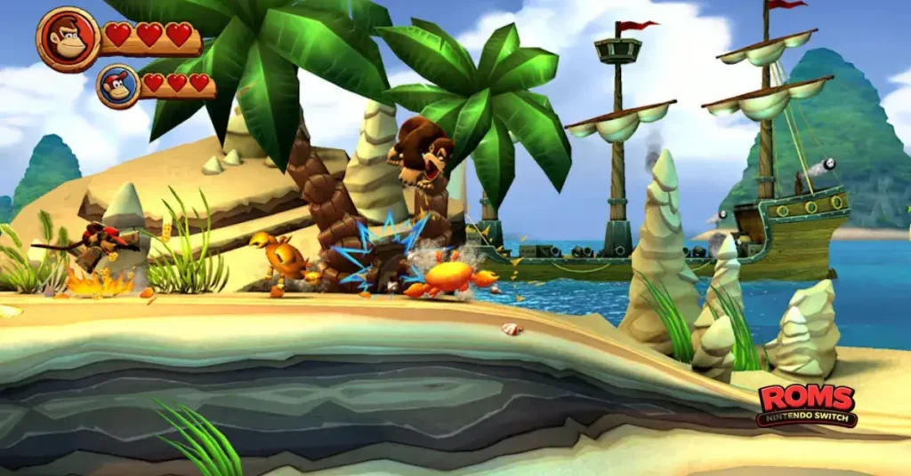The game is set on Donkey Kong Island, where the Tiki Tak Tribe has stolen Donkey Kong’s precious bananas. Players must traverse multiple themed worlds, including jungles, volcanoes, snowy peaks, and pirate-infested waters. Each world introduces unique challenges, enemy types, and environmental hazards.