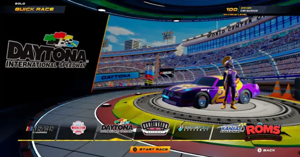The game includes a selection of NASCAR-style tracks inspired by real-world locations. Each track is designed to support high-speed racing and dramatic overtakes.