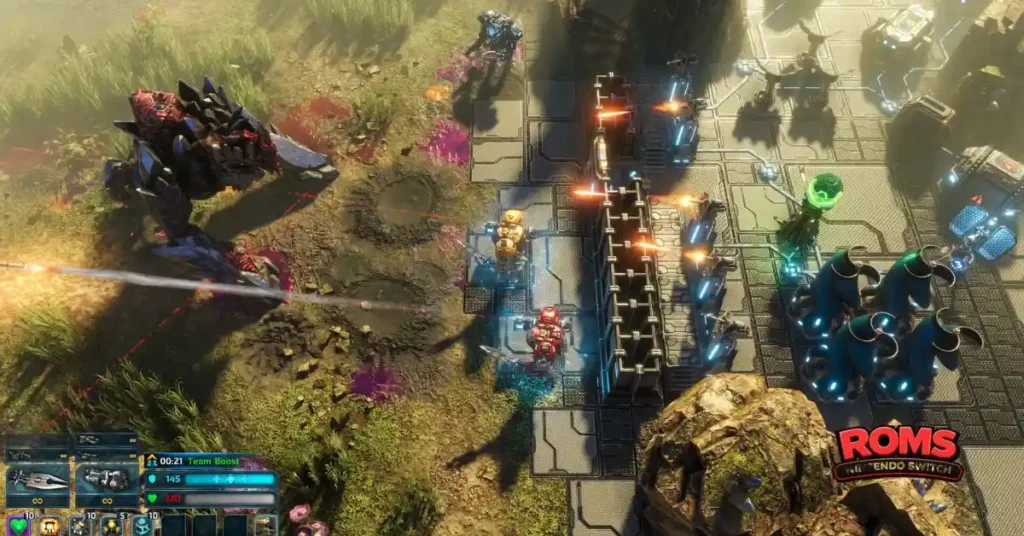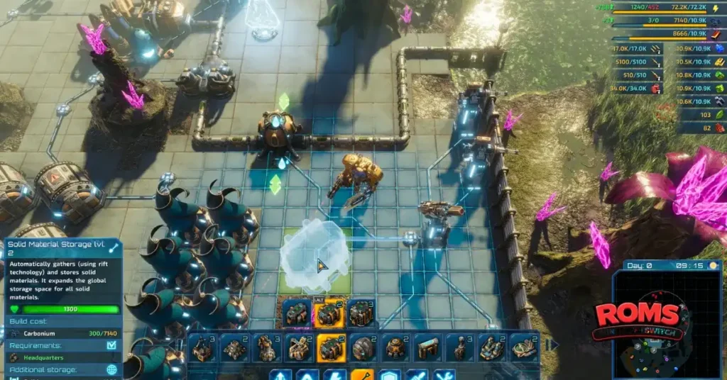 Combat in The Riftbreaker is fast and tactical. Your mech suit can dodge, dodge roll, shoot, and use special abilities to outmaneuver alien threats. Facing larger swarms or massive bosses requires quick reflexes and smart positioning.